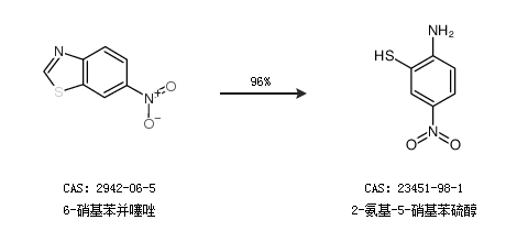 1.通過6-硝基苯并噻唑合成2-氨基-5-硝基苯硫醇,收率約96%;