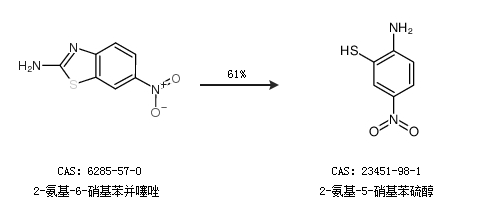 2.通過2-氨基-6-硝基苯并噻唑合成2-氨基-5-硝基苯硫醇,收率約61%;