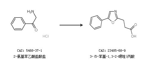 1.通過2-氨基苯乙酮鹽酸鹽合成3-(5-苯基-1,3-2-噁唑)丙酸