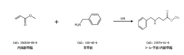1.通過(guò)丙烯酸甲酯和苯甲胺合成3-(n-芐胺)丙酸甲酯,收率約97%;