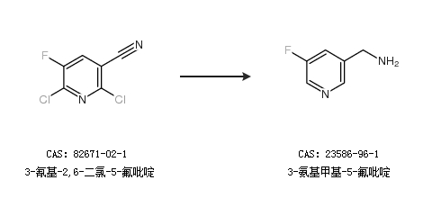1.通過(guò)3-氰基-2,6-二氯-5-氟吡啶合成3-氨基甲基-5-氟吡啶