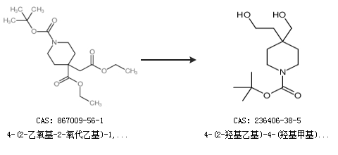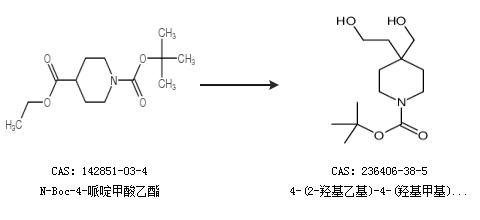 2.通過(guò)N-Boc-4-哌啶甲酸乙酯合成4-(2-羥基乙基)-4-(羥基甲基)-1-哌啶羧酸 1,1-二甲基乙酯
