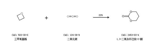 2.通過三甲氧基酯和二氧化碳合成1,3-二氧雜環(huán)己烷-2-酮,收率約22%;