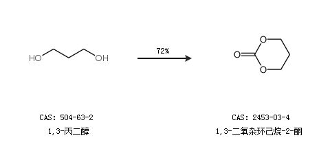 1.通過1,3-丙二醇合成1,3-二氧雜環(huán)己烷-2-酮,收率約72%;