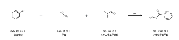 1.通過鄰溴吡啶、甲醇和N,N-二甲基甲酰胺合成2-吡啶甲酸甲酯,收率約64%;