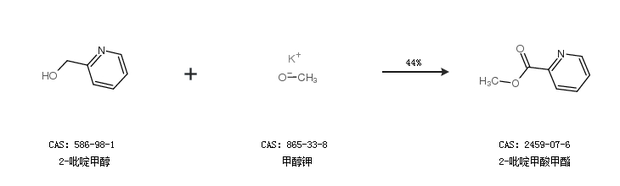 2.通過2-吡啶甲醇和甲醇鉀合成2-吡啶甲酸甲酯,收率約44%;