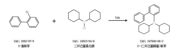 2.通過2-溴聯(lián)苯和二環(huán)己基氯化膦合成2-(二環(huán)己基膦基)聯(lián)苯,收率約73%;