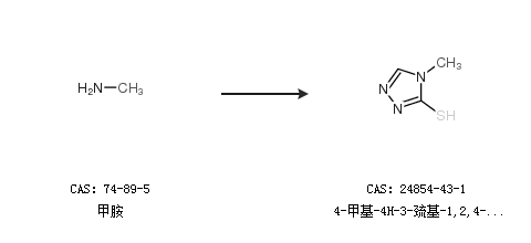 2.通過(guò)甲胺合成4-甲基-4H-3-巰基-1,2,4-三氮唑