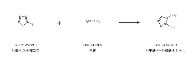1.通過(guò)2-溴-1,3,4-噻二唑和甲胺合成4-甲基-4H-3-巰基-1,2,4-三氮唑