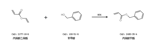 1.通過丙烯酸乙烯酯和苯甲醇合成丙烯酸芐酯,收率約95%;