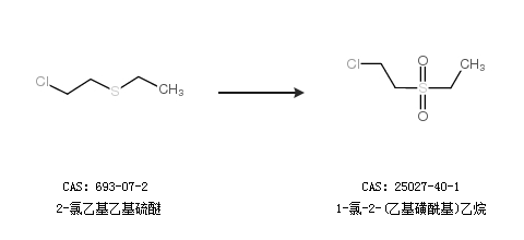 1.通過2-氯乙基乙基硫醚合成1-氯-2-(乙基磺?;?乙烷,收率約88%;