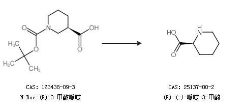 2.通過(guò)N-Boc-(R)-3-甲酸哌啶合成(R)-(-)-哌啶-3-甲酸