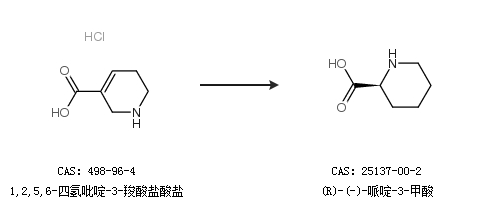 1.通過(guò)1,2,5,6-四氫吡啶-3-羧酸鹽酸鹽合成(R)-(-)-哌啶-3-甲酸
