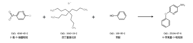 1.通過2-氯-5-硝基吡啶、四丁基溴化銨和苯酚合成6-苯氧基-3-吡啶胺