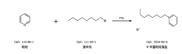 1.通過吡啶和溴辛烷合成N-辛基吡啶溴鹽,收率約77%;