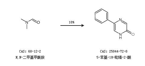 2.通過N,N-二甲基甲酰胺合成5-苯基-1H-吡嗪-2-酮,收率約18%;