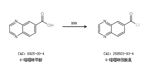 1.通過(guò)6-喹喔啉甲酸合成6-喹喔啉羰酰氯,收率約99%;