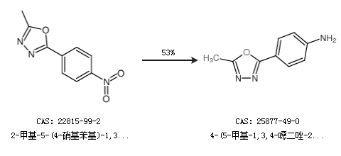 1.通過(guò)2-甲基-5-(4-硝基苯基)-1,3,4-噁二唑合成4-(5-甲基-1,3,4-噁二唑-2-基)苯胺,收率約53%;