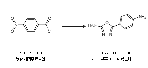 2.通過(guò)氯化對(duì)硝基苯甲酰合成4-(5-甲基-1,3,4-噁二唑-2-基)苯胺