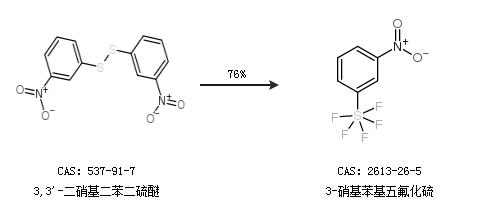 2.通過(guò)3,3''-二硝基二苯二硫醚合成3-硝基苯基五氟化硫,收率約76%;