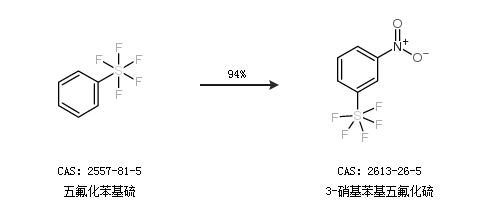 1.通過(guò)五氟化苯基硫合成3-硝基苯基五氟化硫,收率約94%;