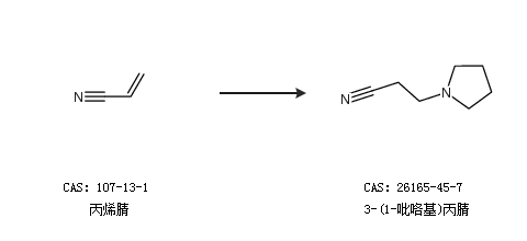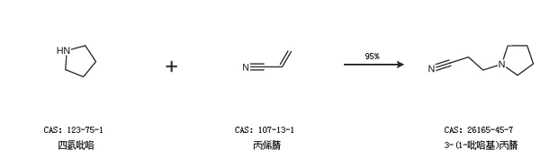 1.通過四氫吡咯和丙烯腈合成3-(1-吡咯基)丙腈,收率約95%;