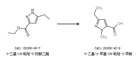 2.通過3-乙基-1H-吡唑-5-羧酸乙酯合成5-乙基-2-甲基-2H-吡唑-3-甲酸