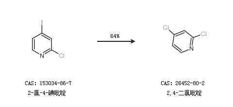 2.通過2-氯-4-碘吡啶合成2,4-二氯吡啶,收率約64%;