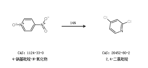 1.通過4-硝基吡啶-N-氧化物合成2,4-二氯吡啶,收率約14%;