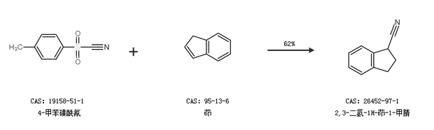 1.通過(guò)4-甲苯磺酰氰和茚合成2,3-二氫-1H-茚-1-甲腈,收率約62%;