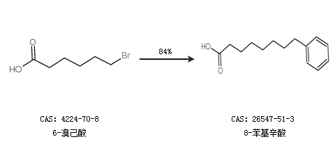1.通過6-溴己酸合成8-苯基辛酸,收率約84%;