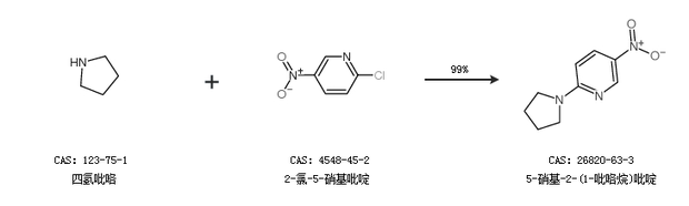 2.通過四氫吡咯和2-氯-5-硝基吡啶合成5-硝基-2-(1-吡咯烷)吡啶,收率約99%;