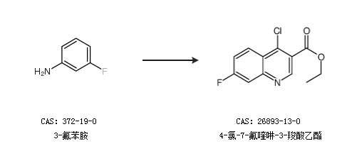 2.通過3-氟苯胺合成4-氯-7-氟喹啉-3-羧酸乙酯