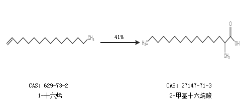 1.通過1-十六烯合成2-甲基十六烷酸,收率約41%;