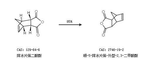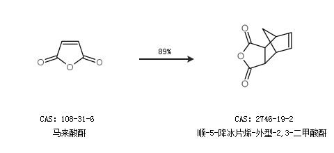 1.通過馬來酸酐合成順-5-降冰片烯-外型-2,3-二甲酸酐,收率約89%;