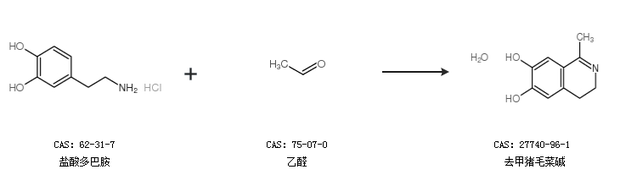 1.通過鹽酸多巴胺和乙醛合成去甲豬毛菜堿