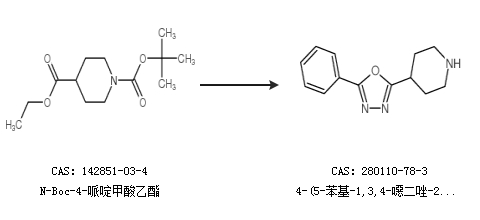 1.通過N-Boc-4-哌啶甲酸乙酯合成4-(5-苯基-1,3,4-噁二唑-2-基)哌啶