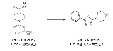 2.通過1-BOC-4-哌啶甲酰肼合成4-(5-苯基-1,3,4-噁二唑-2-基)哌啶