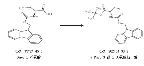 1.通過Fmoc-L-絲氨酸合成N-Fmoc-3-碘-l-丙氨酸叔丁酯