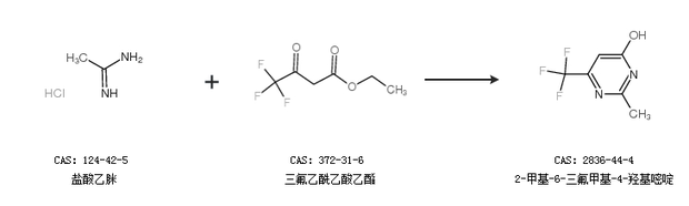 1.通過鹽酸乙脒和三氟乙酰乙酸乙酯合成2-甲基-6-三氟甲基-4-羥基嘧啶