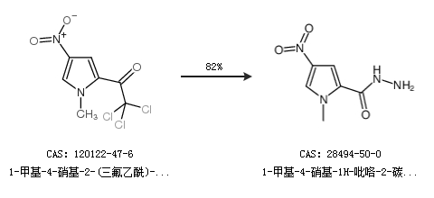 1.通過1-甲基-4-硝基-2-(三氟乙酰)-1H-吡咯合成1-甲基-4-硝基-1H-吡咯-2-碳酰肼,收率約82%;