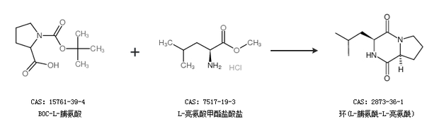 1.通過BOC-L-脯氨酸和L-亮氨酸甲酯鹽酸鹽合成環(huán)(L-脯氨酰-L-亮氨酰)