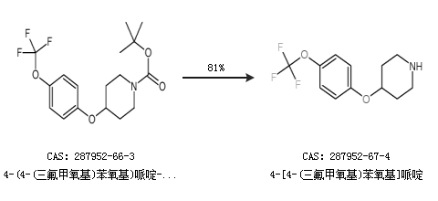 1.通過(guò)4-(4-(三氟甲氧基)苯氧基)哌啶-1-羧酸叔丁酯合成4-[4-(三氟甲氧基)苯氧基]哌啶,收率約81%;