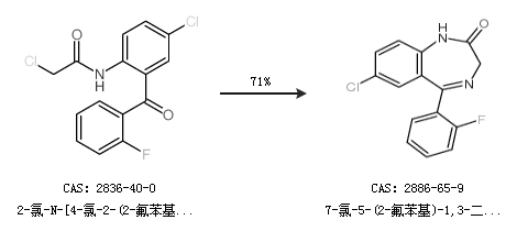 1.通過2-氯-N-[4-氯-2-(2-氟苯基)苯基]乙酰胺合成7-氯-5-(2-氟苯基)-1,3-二氫-3H-1,4-苯并二氮雜卓-2-酮,收率約71%;