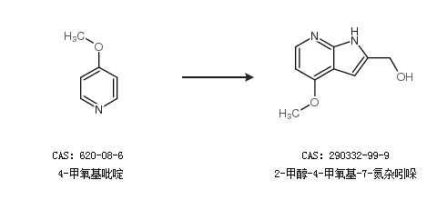 2.通過(guò)4-甲氧基吡啶合成2-甲醇-4-甲氧基-7-氮雜吲哚