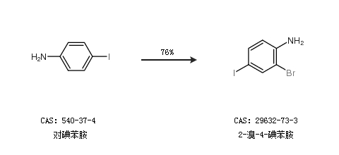 1.通過(guò)對(duì)碘苯胺合成2-溴-4-碘苯胺,收率約76%;