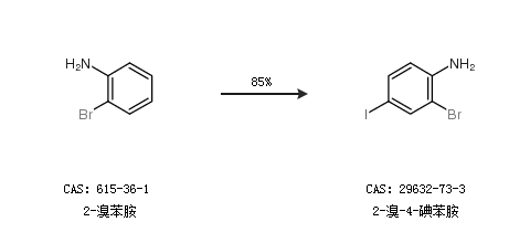 2.通過(guò)2-溴苯胺合成2-溴-4-碘苯胺,收率約85%;