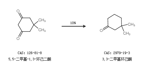 1.通過5,5-二甲基-1,3-環(huán)己二酮合成3,3-二甲基環(huán)己酮,收率約10%;
