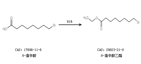 1.通過乙醇和8-溴辛酸合成8-溴辛酸乙酯,收率約96%;
