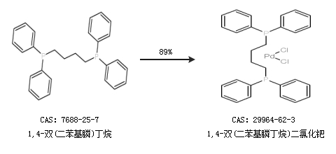 1.通過1,4-雙(二苯基膦)丁烷合成1,4-雙(二苯基膦丁烷)二氯化鈀,收率約93%;
